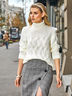 Теплый вязаный свитер с высокой горловиной. Полочка и рукав изделия выполнены фактурой «коса».