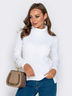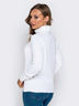 Элегантный вязаный свитер с объемным воротником. Полочка изделия выполнена в мелкий «рубчик», дополнена небольшими разрезами у основания. Спинка удлинена.