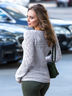Женственный вязаный свитер с горловиной «лодочка». Кокетка и рукава выполнены ромбами с перфорацией.