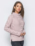 Вязанный свитер с объемными вертикальными косами на полочке и рукавах. Манжеты выполнены широкой резинкой.