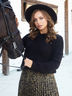 Удобный вязаный свитер с широкой круглой горловиной. Изделие свободного силуэта выполнено крупной чулочной вязкой. Низ и манжеты изделия оформлены резинкой.