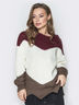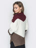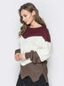Трехцветный объёмный свитер из приятной к телу пряжи. Изюминка модели - ассиметричный низ.
