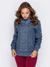 Шерстяной свитер ажурной вязки на полочке и рукавах. Манжеты и низ выполнены резинкой.