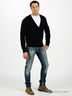 Детали: V-образный вырез, застежка на пуговицах декорированы вставкой из хлопка. Рукав длинный.