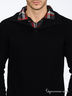 Теплый вязаный свитер с эффектом двойки, с длинными рукавами. Застежка на молнию и пуговицы. Манжеты рукавов, ворот и низ изделия оформлены в рубчик. Верх изделия выполнен из фактурной вязки, на локтях нашивки из искусственной кожи.