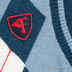 Восхитительный свитер из шерстяного трикотажа крупной вязки. Воротник гольф, длинные узкие рукава с небольшой трикотажной манжетой, эффект двойки, подол посажен на резинку, по полочке классическая вышивка ромбами.