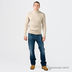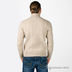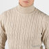 Стильный мужской свитер из мягкого шерстяного трикотажа с воротником-стойкой с отворотом. Свитер украшает рельефная узор "косы".