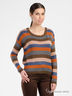 Джемпер с длинными рукавами и округлым вырезом горловины. Модель выполнена с эффектным рисунком в полоску. Отличный вариант на каждый день.