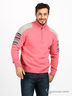 Теплый вязаный свитер с воротником стойка и застежкой на молнию. Прямой силуэт. Ворот, манжеты рукавов и низ изделия оформлены в рубчик.