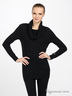 Стильный свитер удлиненного кроя. Широкий отложной воротник дополнен резинкой в мелкий рубчик. Длинный рукав и низ изделия на резинке в мелкий рубчик.