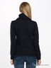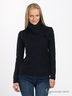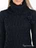 Очаровательный полушерстяной свитер темно-синего цвета. Широкий высокий ворот, уютный и стильный. Ворот украшен помпонами, что придает модели особое очарование.