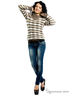 Свитер с воротником-гольф и длинными рукавами формы реглан. Оформлен вывязанным рисунком. Края и воротник выполнены в резинку для практичности. Воротник с застежкой.