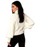 Детали: воротник хомут, длинные рукава фонарики, спущенная линия плеча