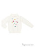 Прекрасный свитер с длинными рукавами и отложным воротником. Модель оформлена спереди вязаным рисунком и украшена декоративными элементами. Края выполнены в резинку.