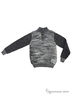 Стильный свитер с высоким воротником-стойка, застежка на пуговицы до середины груди, стильный принт на груди в виде байка в технике, фактурный рисунок на рукавах изделия, воротник, манжеты и низ - вязаная резинка.