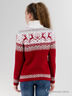 Женский приталенный свитер с высоким эластичным горлом. Модель прямого покроя с длинными рукавами, декорирована контрастной расцветкой. Примерная длина изделия по спинке 56 см.