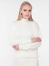Свитер с узором "косы". Изделие выполнено из мягкой, теплой пряжи со стрейчевым эффектом. Воротник-стойка. Длинные широкие рукава. Силуэт свободный, прямой. Низ изделия, горловина и рукава отделаны плотной резинкой.