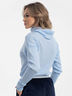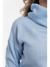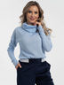Мягкий джемпер полуприлегающего силуэта голубого цвета. Джемпер выполнен в технике ручного вязания из натуральных нитей с добавлением шерсти. Джемпер с воротником хомут и втачными рукавами. Аксессуары в комплект не входят. Длина изделия по спинке от плечевого шва до низа изделия — 59 см.