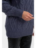 Обворожительный свитер прямого силуэта цвета мндиго. Свитер выполнен в технике «ручного вязания» из натуральных нитей с содержанием шерсти. Круглый вырез изделия обработан воротником "хомут". Низ рукавов-реглан обработан широкими манжетами. По переду изделия вывязан объемный рисунок. Низ изделия вывязан резинкой.