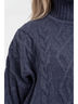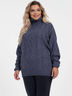 Обворожительный свитер прямого силуэта цвета мндиго. Свитер выполнен в технике «ручного вязания» из натуральных нитей с содержанием шерсти. Круглый вырез изделия обработан воротником "хомут". Низ рукавов-реглан обработан широкими манжетами. По переду изделия вывязан объемный рисунок. Низ изделия вывязан резинкой.