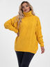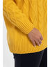 Обворожительный свитер прямого силуэта желтого цвета. Свитер выполнен в технике «ручного вязания» из натуральных нитей с содержанием шерсти. Круглый вырез изделия обработан воротником "хомут". Низ рукавов-реглан обработан широкими манжетами. По переду изделия вывязан объемный рисунок. Низ изделия вывязан резинкой.