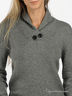 Стильный теплый свитер светло-серого цвета. Оригинальный воротник стойка с нахлестом, декорирован пуговицами. Длинные рукава. Комфортная, уютная модель согреет Вас в самую холодную погоду и прекрасно подчеркнет свободный, изящный стиль.
