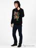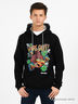 Модный свитшот из мягкого хлопкового трикотажа средней плотности. Округлый вырез горловины дополнен капюшоном на кулиске. Длинные свободные рукава на манжетах. Манжеты и низ изделия выполнены из кашкорсе. Перед изделия декорирован ярким печатным рисунком.