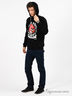 Эффектный свитшот из плотного, мягкого хлопкового трикотажа. Округлый вырез горловины дополнен капюшоном на кулиске. Длинный свободный рукав на манжете. Манжеты и низ изделия выполнены из кашкорсе. Перед декорирован оригинальным, стильным печатным рисунком.
