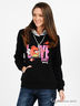 Элегантный свитшот полуприталенного силуэта из мягкого, приятного на ощупь хлопкового трикотажа высокой плотности. Округлый вырез горловины дополнен капюшоном на кулиске. Длинные прямые рукава на манжетах. Манжеты и низ изделия выполнены из рибаны. Спереди накладной карман "кенгуру". Полочки декорированы модным, эффектным рисунком.