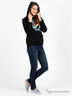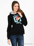 Элегантный свитшот полуприталенного силуэта из мягкого, приятного на ощупь хлопкового трикотажа высокой плотности. Округлый вырез горловины дополнен капюшоном на кулиске. Длинные прямые рукава на манжетах. Манжеты и низ изделия выполнены из рибаны. Спереди накладной карман "кенгуру". Полочки декорированы модным, эффектным рисунком.