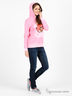 Оригинальный свитшот из мягкого, плотного, хлопкового трикотажа. Округлый вырез горловины. Длинные прямые рукава на манжетах. Ворот, манжеты, низ изделия выполнены из рибаны. Спереди модный, стильный рисунок.