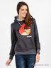 Модный свитшот из мягкого хлопкового трикотажа средней плотности. Округлый вырез горловины дополнен капюшоном на кулиске. Длинные свободные рукава на манжетах. Манжеты и низ изделия выполнены из кашкорсе. Перед изделия декорирован ярким печатным рисунком.