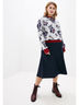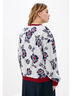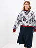Свитшот свободного силуэта, выполнен из мягкой трикотажной ткани. Модель лаконичного фасона, но за счет цветочного принта и яркой отделки выглядит модно и современно. Рукав втачной полной длины на широком манжете. Низ изделия на поясе. Спинка без особенностей.