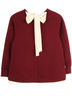 Свитшот с длинным рукавом на манжете. По низу свитшота рюш из сетки-стрейч, на спинке завязка на бант, спереди принт, украшенный стразами. Изготовлен из петельчатого футера с эластаном.