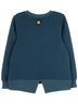 Свитшот с длинным рукавом на манжете. По переду стильный принт. Спинка удлиненная, с декоративным элементом. Изготовлен из футера 2-х нитки с эластаном.
