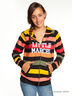 Свитшот в разноцветную полоску с капюшоном. Длинные рукава. Застежка на молнию. Карман-кенгуру. Логотип на груди. Размер по росту в см.