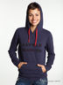 Однотонный женский свитшот с длинными рукавами. Капюшон на кулиске. Карман-кенгуру. Логотип спереди.
