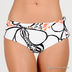 Трусики шорты с декоративными отворотом и завязкой. Украшены принтами.