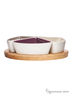 У Вас намечается вечеринка? Или Вы просто планируете семейный обед? В любом случае такой набор сервировочных тарелок отлично подойдет для подачи разнообразных закусок! К тарелкам прилагается бамбуковая подставка, с которой можно поэкспериментировать в украшении стола. Отлично подойдет в качестве подарка. В наборе 4 миски и подставка из дерева. Размер: 7x7x7 см.