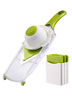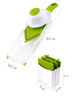 Терка с V-лезвием и четыре сменных насадки для разного вида измельчения. Подходит для сырых и приготовленных овощей. Плюс безопасный держатель, который защищает ваши пальцы и ногти от лезвия. Салаты, овощные запеканки, квашеная капуста - быстро и безупречно. Ярких блюд вам!
