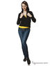 Толстовка с центральной застежкой на фирменную молнию, кокеткой и капюшоном. Боковые карманы на молниях. На рукавах и по низу куртки контрастные канты. Манжеты и пояс – из трикотажного полотна ластик. Вышивка логотипа.