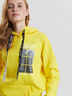 Толстовка женская "Reality" от бренда Barmariska, выполнена из плотного хлопкового трехпетельного футера. Модель свободного кроя с накладным карманом-кенгуру и спущенной линией плеча. Манжеты низа и рукавов изделия выполнены из кашкорсе. Капюшон на подкладке из кулирки с брендированной тесьмой-шнурком. Дизайнерский принт на груди выполнен методом шелкографии и дополнен декоративной нашивкой на правом рукаве. Цвет изделия и принта может незначительно отличаться от цвета на фото.