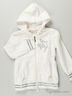 Удлиненная толстовка приталенного силуэта с капюшоном и длинным рукавом выполнена из эластичного трикотажа средней плотности. Застежка на молнию. Манжеты и низ изделия - трикотажные резинки. По линии талии втачной пояс. Полочка украшена принтами и стразами.