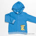 Толстовка прямого кроя с капюшоном и длинным рукавом застегивается на кнопки на полочке по всей длине изделия. Контрастные манжеты и низ изделия - трикотажные резинки. Полочка украшена аппликацией.