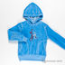 Велюровая толстовка прямого кроя с капюшоном и длинным рукавом. В край капюшона вставлен регулирующий шнурок. Внешний ворот, манжеты и низ изделия - трикотажные резинки. Два передних кармана. Полочка украшена вышивкой, паетками и блестящим бантиком.