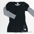 Туника прямого кроя с расклешенной "юбкой" и эффектом двойки, который создается за счет двойных рукавов - внутренние - длинные и наружные - фонарики. Плечики украшены пуговицами. Декоративная сборка на полочке. Линия талии обозначена многорядной резинкой. Декоративная аппликация на нижней части изделия.