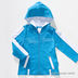 Голубая толстовка с белыми полосками с капюшоном и карманами.