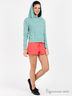 Детали: вырез с запахом; манжеты длинного рукава и низ изделия в виде трикотажной ленты; капюшон