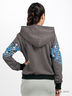 Стильная толстовка прямого кроя из плотной хлопковой ткани согреет Вас в холодную погоду и подойдет как для повседневной носки, так и для занятий спортом. Застегивается на молнию. Капюшон на кулиске. Длинный прямой рукав и низ изделия посажены на трикотажную резинку в мелкий рубчик. Рукава декорированы оригинальным набивным рисунком.