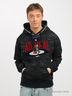 Теплая трикотажная толстовка с приятной на ощупь подкладкой. Капюшон с кулиской по краю. Манжеты и низ изделия посажены на трикотажную резинку. Карман кенгуру. На полочке бархатистая нашивка.